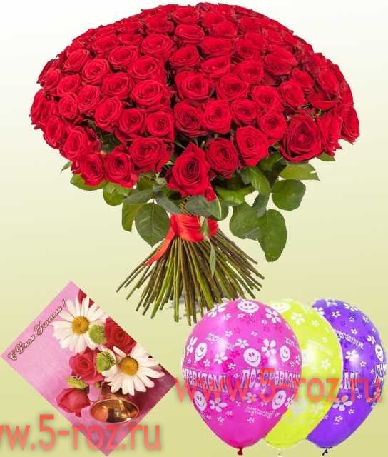 101 красная роза(Эквадор) + шарики 3шт