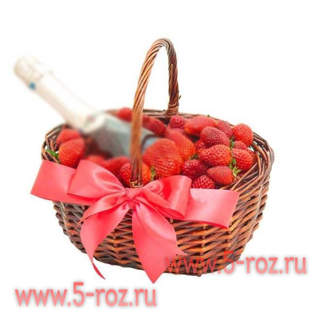 В состав корзины входит: Клубника – 1 кг.подарок Декор:бант Корзина упакована в прозрачную плёнку с бантом. Размер корзины примерно 25х19см. Данное изображение носит ознакомительный характер и может отличаться от реальности. Напиток поставляется с корзиной только лицам не моложе 18 лет. Вы можете добавить к корзине свои напитки или заказать у нас услугу доставки. Для индивидуального расчета по корзинам обращайтесь к менеджерам 5-roz@bk.ru или +79219060281 - (whatsapp).(viber) +79219669574