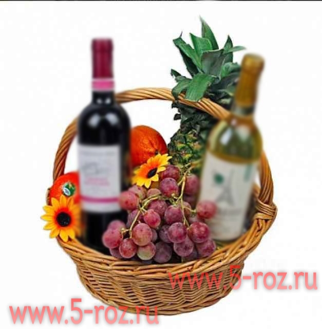 Состав: ананас, виноград, апельсины Данное изображение носит ознакомительный характер и может отличаться от реальности. Напиток поставляется с корзиной только лицам не моложе 18 лет. Вы можете добавить к корзине свои напитки или заказать у нас услугу доставки. Для индивидуального расчета по корзинам обращайтесь к менеджерам 5-roz@bk.ru или +79219060281 - (whatsapp).(viber) +79219669574