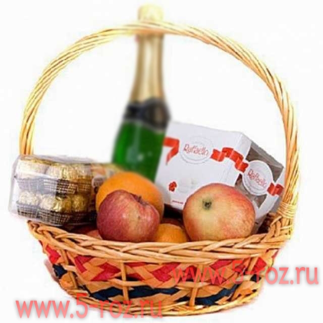 Состав: апельсины, яблоки, шоколадные конфеты, рафаэльки Размер Вес: 2,3 кг Данное изображение носит ознакомительный характер и может отличаться от реальности. Напиток поставляется с корзиной только лицам не моложе 18 лет. Вы можете добавить к корзине свои напитки или заказать у нас услугу доставки. Для индивидуального расчета по корзинам обращайтесь к менеджерам 5-roz@bk.ru или +79219060281 - (whatsapp).(viber) +79219669574