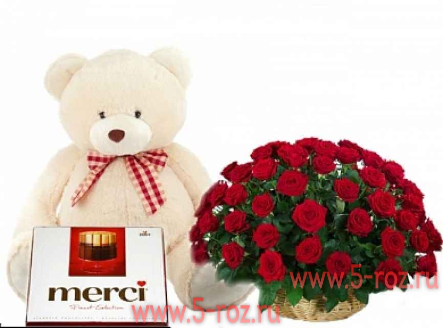 Большое спасибо за доставку! Но почему букет доставили а мишку нет я так и не поняла!!!!