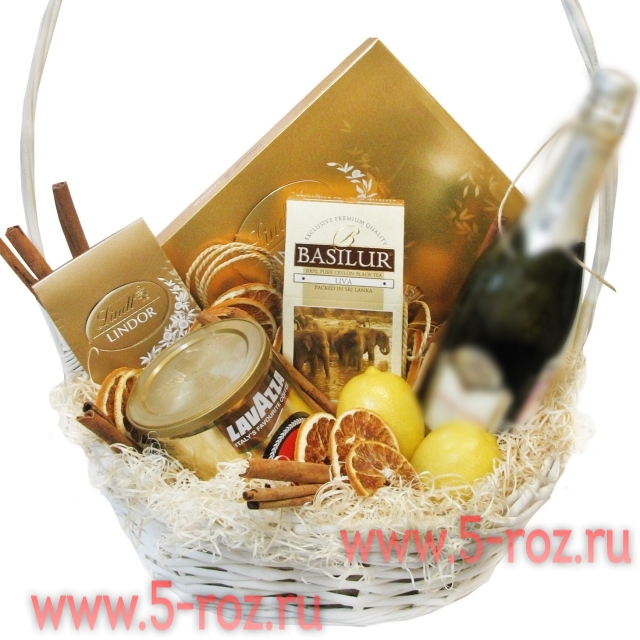 Состав:Упаковка (пленка с лентой. Конфеты Lindt 200 гр., Конфеты Lindt Lindor 210 гр, Кофе lavazza в железной банке 250гр, Декор палочки корицы, Дольки апельсина, Лимон, шт 2шт., Декоративная стружка, Чай Basilur карт/уп 100 гр , Корзина плетеная ива 36*27 см (фруктовая) Данное изображение носит ознакомительный характер и может отличаться от реальности. Напитокпредоставляется только лицам достигшим 18 летнего возраста. Вы можете добавить к корзине свои напитки или заказать у нас услугу доставки. Для индивидуального расчета по корзинам обращайтесь к менеджерам 5-roz@bk.ru или +79219060281 - (whatsapp).(viber) +79219669574